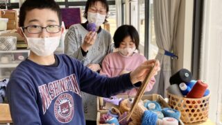 こちらでは網代織のハンカチを織るために経糸のセットを始めていたり・・・