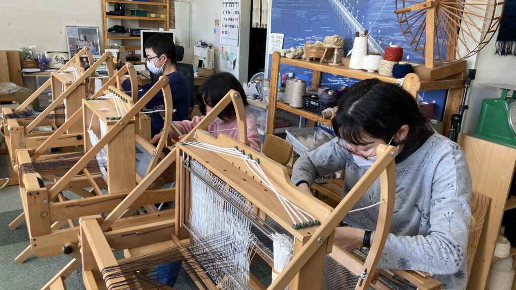 今日のTCC春本番のいい天気が続くなか、親子三人でコースターの手織り体験に来てくださいました。