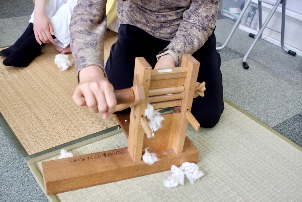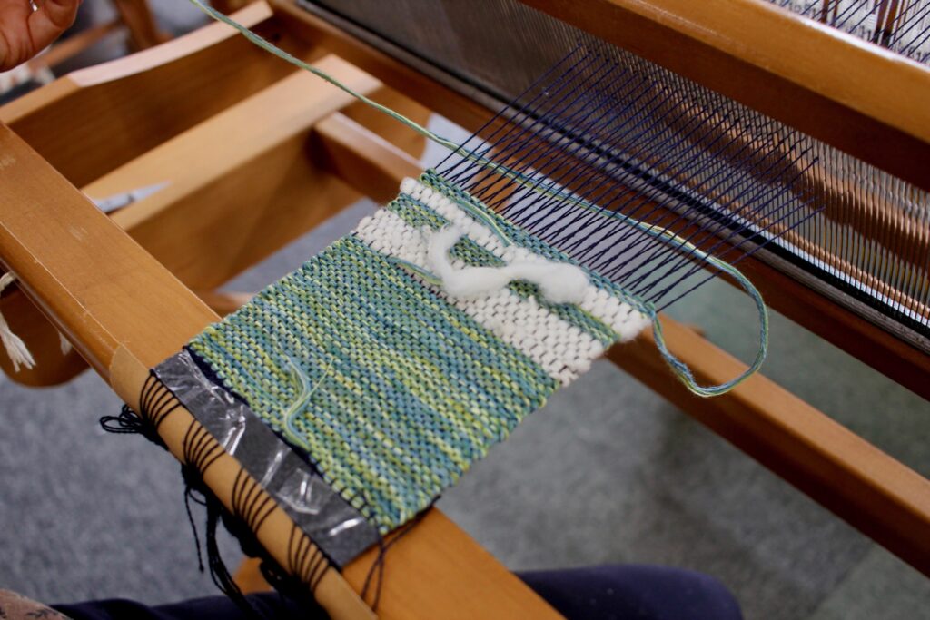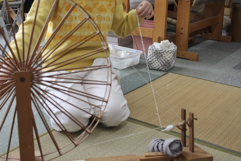 織りの工程は黙々と進めていただき、ご自分で紡いだ糸も織り込めました!